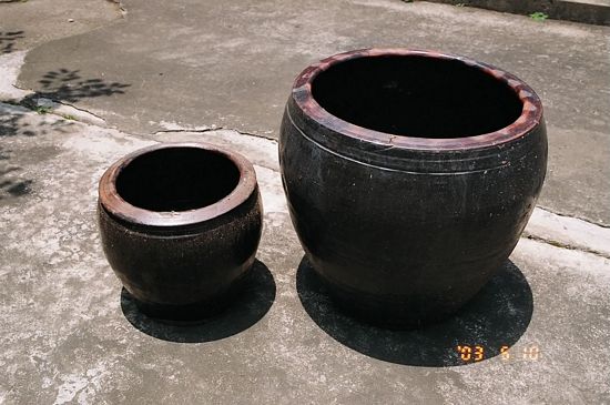 【客家語用詞】以陶土燒成,用來醃蘿蔔、酸菜等的缸子。
