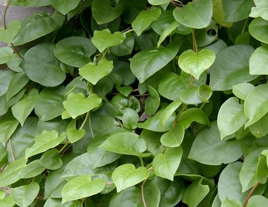 川七 【客家語用詞】別名「藤三七」,又稱「泉七」。葉互生,肉質肥厚呈心型,具有滋補、活血等藥效,可供藥用。原本只當作藥材用的藤三七,因食用時脆而略有黏滑感,口味佳,故又被當作食療之蔬菜。